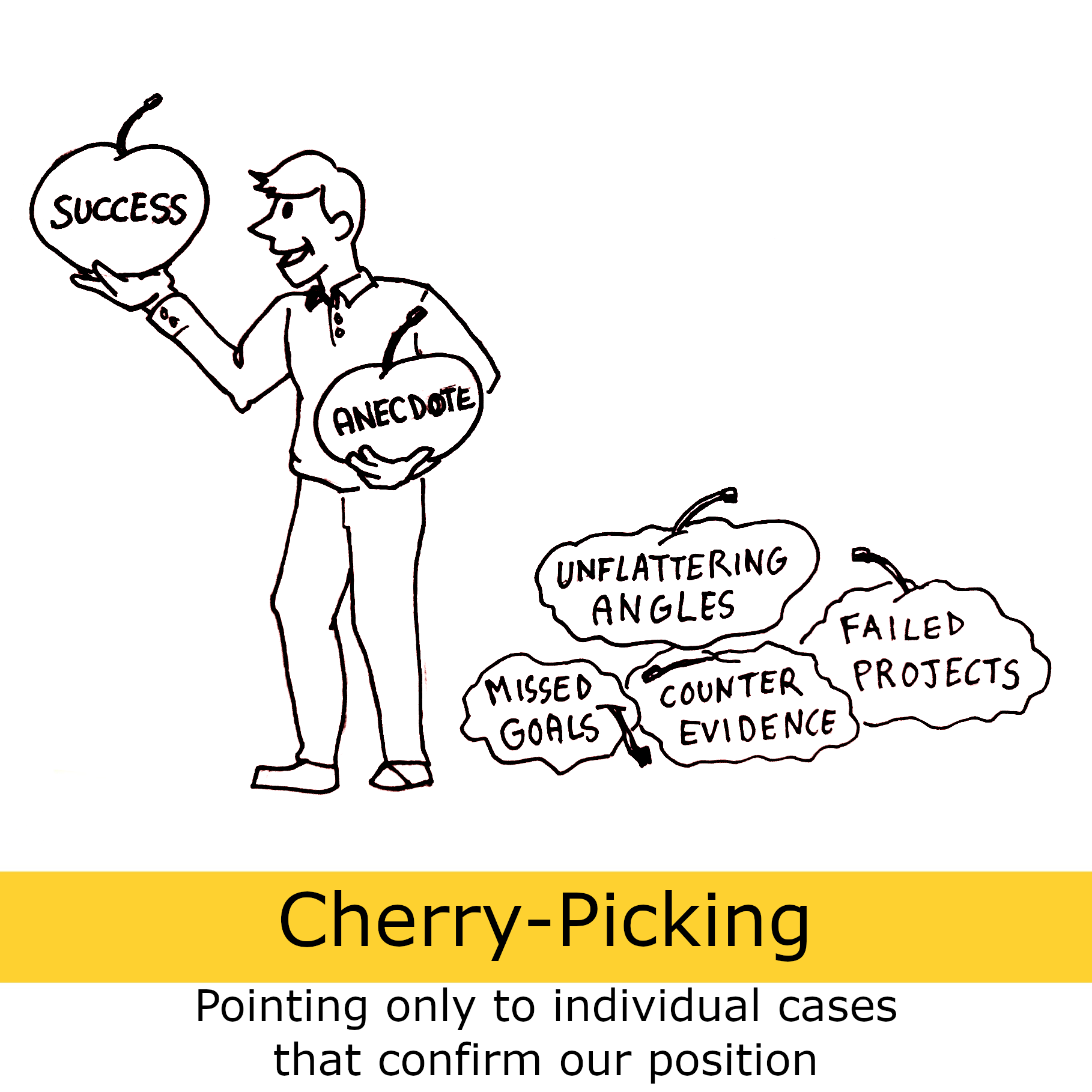 We cherry-pick when we select data or evidence that supports a particular conclusion while ignoring data that contradicts it, leading to a biased or misleading interpretation.