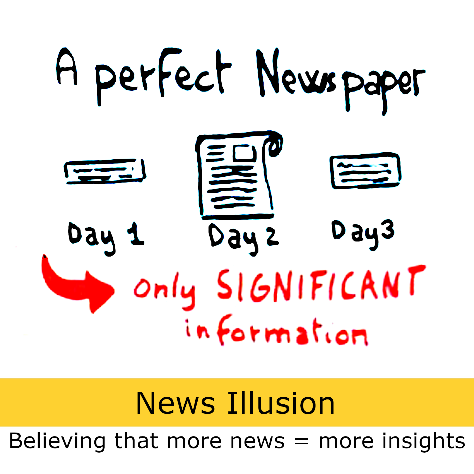 The news illusion is the belief that consuming more news leads to a better understanding of the world, while in reality, it can result in a distorted view due to sensationalism, bias, and the focus on negative or dramatic stories.