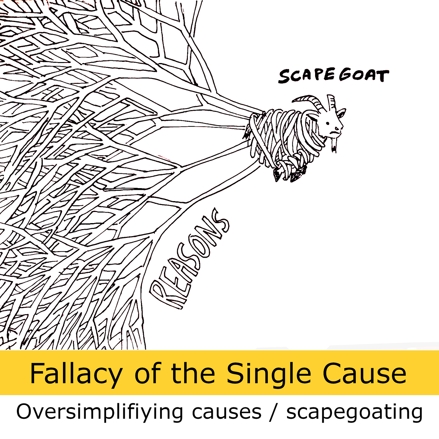 Assuming that a complex issue or event has one primary cause, while other contributing factors are ignored or downplayed. This simplification often leads to the unfair blaming of one person, group, or factor, and overlooks the multifaceted nature of most real-world problems.